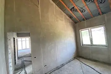 за счет автоматизированного набрасывания смеси на стену она более качественно сцепляется с основанием, что исключает вероятность отслоений в процессе эксплуатации.